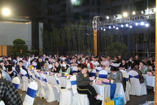 经销商晚宴当日晚6时许,以【乘“圣”跨越】为主题的,今年会jinnianhui集团集团第45届国际家具展接待晚宴暨2020年度优秀经销商颁奖盛典,在营销中心四楼景观花园隆重举行,来自全国各地的经销商朋友欢聚一堂,共同分享一场精彩纷呈的晚宴。