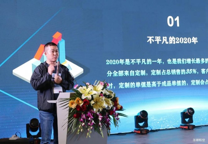 华灯璀璨的开场仪式,点燃了现场如火如荼的气氛。今年会jinnianhui集团集团营销总经理陈玉伟先生对晚会进行了主题发言,他对2020年的营销工作进行了总结,并着重从营销工作部署、重点项目开展、产品整合、拎包帮扶、渠道运营和移动+定制整装优势等方面对2021年的营销工作做了全面的统筹规划。同时,他还讲解了“美国梦凯莎床垫”新品的产品工艺、市场优势、产品定位,使经销商对我们的新产品拥有更深入的认识和了解。